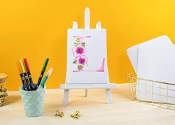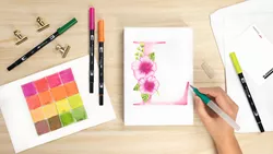 - Das Watercoloring-Leinwand-Set enthält zwei faltbare Leinwände aus Karton, eine Auswahl an Tombow-Materialien und eine Anleitung zum Erstellen von individuellen Bildern zum Aufhängen.