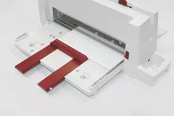 - Doppelt geführter, an drei Punkten einrastbarer Rückanschlag (DIN A5, B5, A4) für einfaches Schneiden von DIN-Formaten.