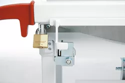 - Feststehender, transparenter Messerschutz aus bruchsicherem Kunststoff und Messerverschlussvorrichtung