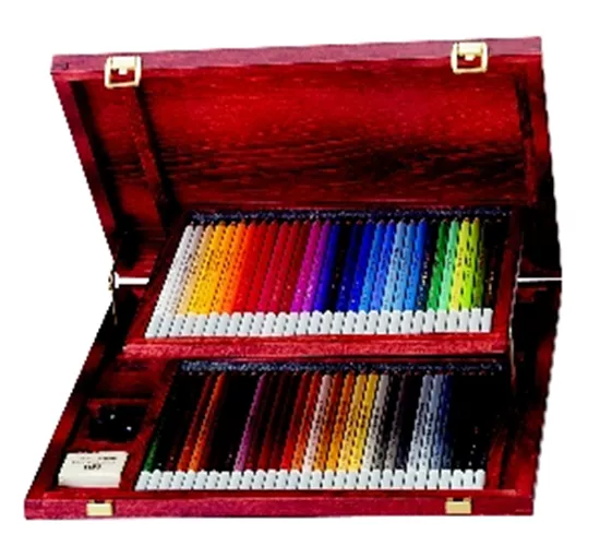 - Ausführung des Inhalts mit Packung: Holzkoffer mit allen 60 Stiften auf 2 Ebenen mit Aufstellautomatik.