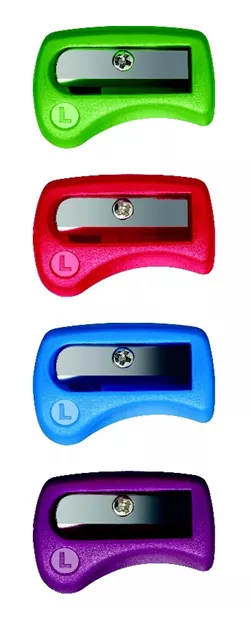 - Ausführung des Inhalts des Displays: sortiert in je 4 Stück lila und dunkelblau (Linkshänder), je 3 Stück lila, dunkelblau, rot, dunkelgrün (Rechtshänder)