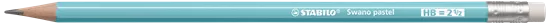 - Der sechskantige Bleistift STABILO Swano Pastel als Einzelstift in der Farbe Blau mit Radiergummi, Härtegrad HB.
