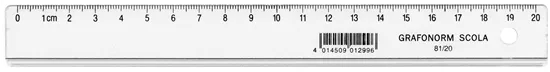 - Transparentes Flachlineal aus Polystyrol mit aufgedruckter 20cm Messskala.