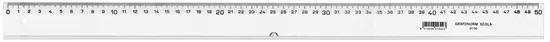 - Transparentes Flachlineal aus Polystyrol mit aufgedruckter 50cm Messskala.