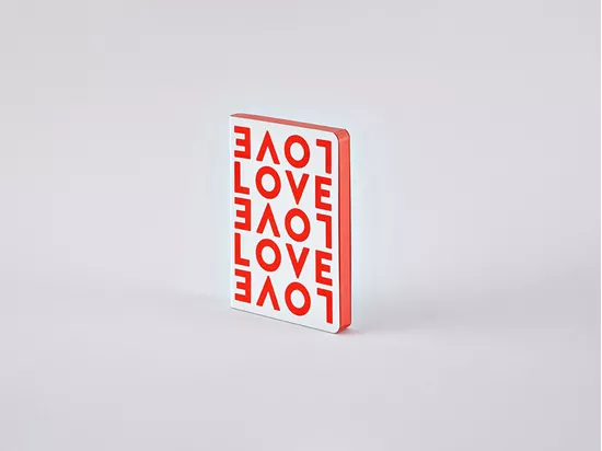 - Pour tous ceux qui tombent amoureux les jours pairs et pleurent sur leur oreiller les jours impairs, il y a de la place pour les pensées, les sentiments et les désirs. Espace pour exactement 176 pages. Plus une housse en cuir souple recyclé. Les roses rouges appartiennent au passé, la sérigraphie rouge demeure.