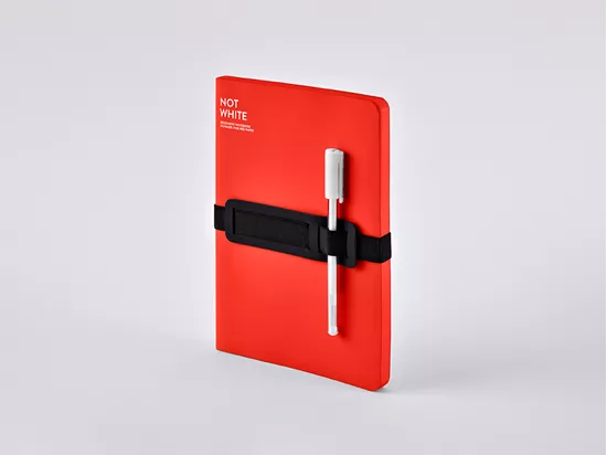- Vous cherchez un outil pour remettre en question vos propres habitudes d'écriture ? Pourquoi ne pas écrire avec un stylo blanc sur du papier rouge ! Ce qui reste le même : une qualité supérieure. Et le plus : un sac à main anti-mouchard avec un stylo gel assorti. L'élastique est à la fois une fermeture et un porte-stylo et smartphone. L'ensemble parfait pour mettre les choses sens dessus dessous.