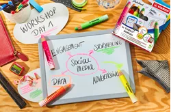 - Le marqueur pour tableau blanc MARKdry Neon, vendu en lot de 4 avec taille-crayon et chiffon, spécialement conçu pour les tableaux blancs et les tableaux à feuilles mobiles.