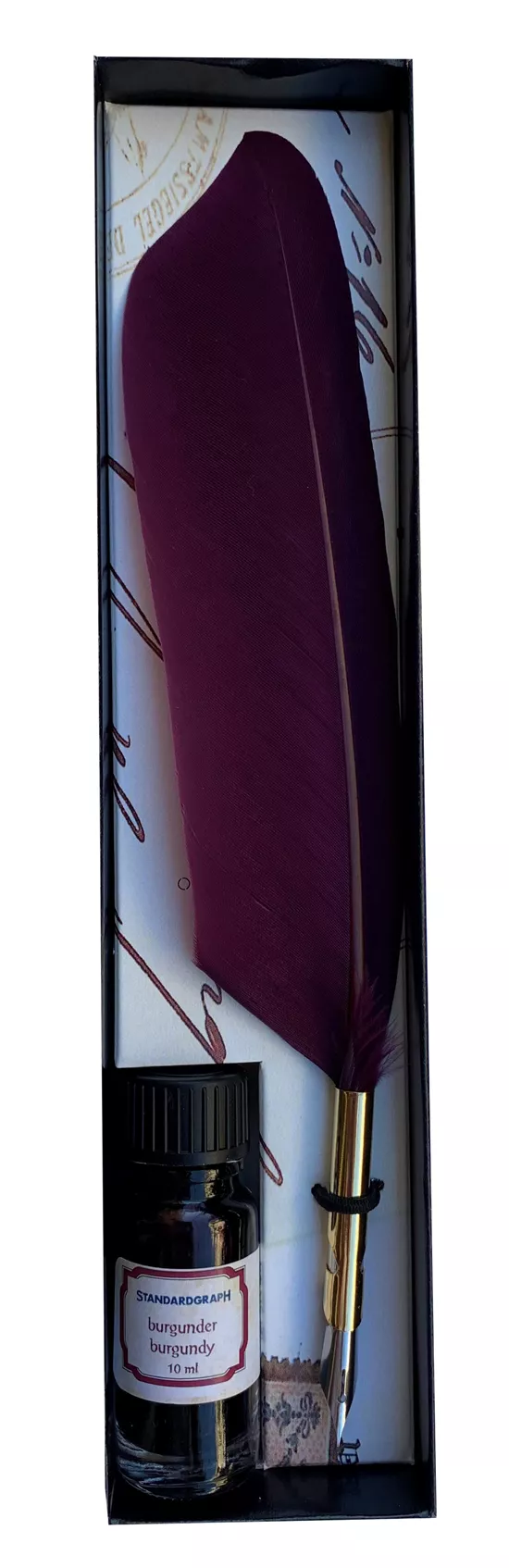 - 1x stylo à plume d'oie avec plume pointue, bourgogne