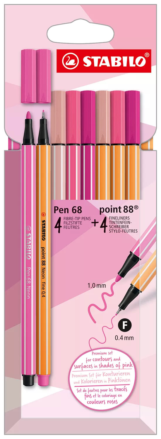 - Feutre premium STABILO Pen 68 Feutre de coloriage et fineliner point 88 en étui de 8 Shades of Pink