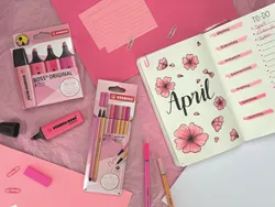 Le fineliner STABILO point 88 avec sa pointe sertie de métal et le feutre premium STABILO Pen 68 avec sa grande brillance de couleur sont le duo parfait pour les applications créatives. Grâce à la haute protection contre le dessèchement, il est possible de travailler de manière détendue. La pointe fine du fineliner et la pointe robuste du feutre permettent de réaliser des lettrages, des sketchnotes ou des mandalas. Les quatre teintes de rose permettent de travailler de manière créative dans des nuances allant du rouge au rose fluo. Les surligneurs STABILO BOSS ORIGINAL dans des tons roses parfaitement assortis sont le complément idéal de ce set.