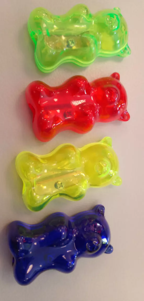 - Taille-crayon ourson en forme d'ourson en gomme - un vrai accroche-regard ! Ce taille-crayon coloré en forme d'ourson en gomme n'est pas seulement pratique, il attire aussi l'attention à l'école, au bureau ou en déplacement. Avec son simple taille-crayon en plastique, il assure une pointe précise et son design compact lui permet de se glisser dans n'importe quelle trousse à crayons. Ses couleurs néon transparentes lui confèrent une touche ludique.