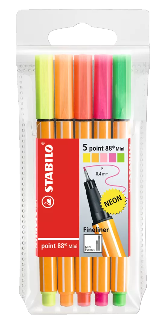 - Description du contenu et de l'emballage: étui en plastique de 5 pièces point 88 MINI néon.